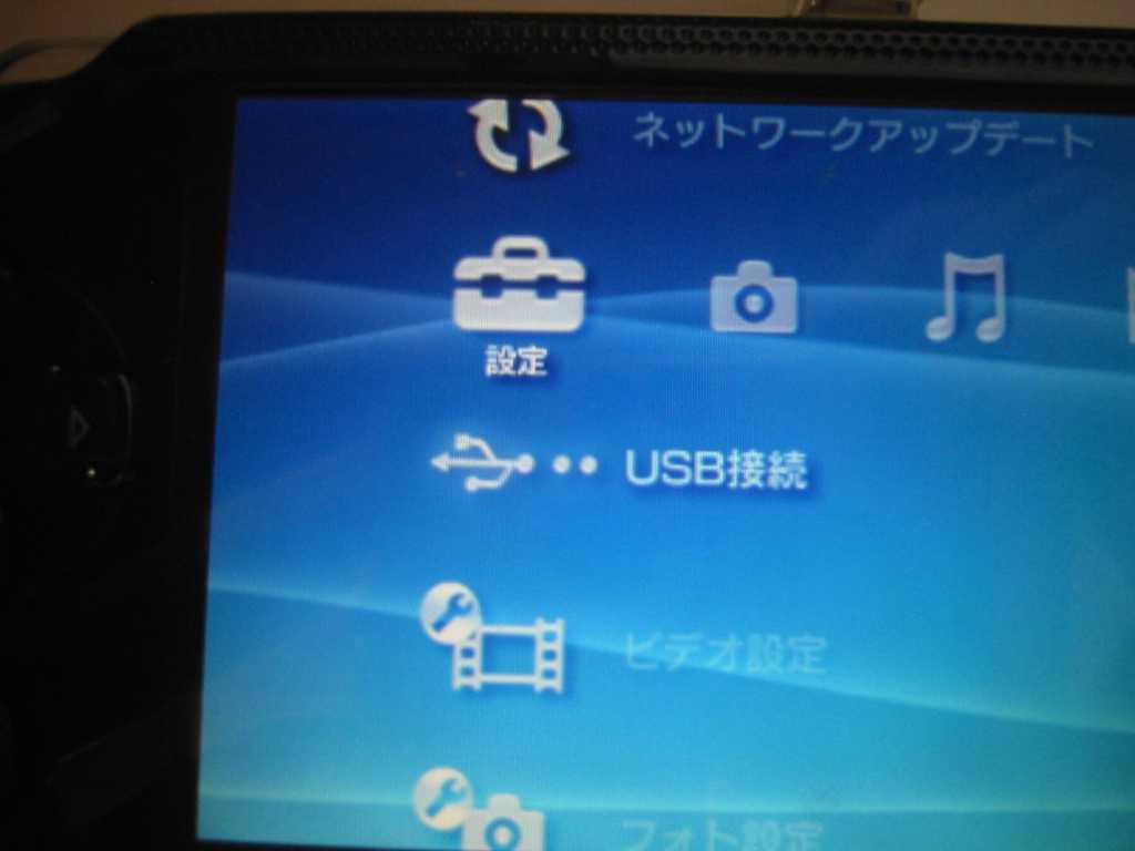 (2)PSPを起動してUSB接続を選択し、PSPを認識させます。
