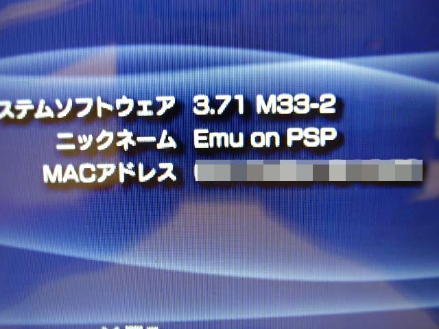 (7)終了するまで暫く待つ (8)終了すると×ボタンでPSPの電源を切るように表示されるので、終了する (9)PSPの電源を入れる前にJigkick BatteryとMMSを抜き、通常のもの(メモリースティックとバッテリー)に変える (10)PSPの電源を入れバージョン情報を見てみると3.71M33-2になっているはず