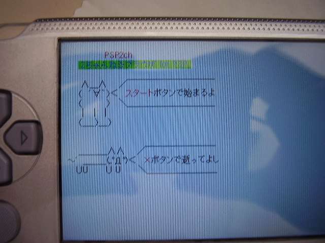 ●導入手順 (1)上記公式ページからファイルをダウンロードし、解凍する (2)プログラム本体をms0:/PSP/GAME/以下に置く (3)PSPのインフラストラクチャー設定をする (4)XMBからプログラムを起動する (5)初回起動時には板一覧をダウンロードするため、少し時間が掛かる
