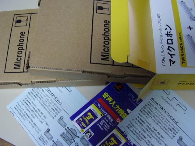 ■PSP向けマイクロホン(2個セット)が届きました というわけで漸く正式対応したSkype向けオプションとして発売されたマイクロホン Twin Pack(AA)がようやく届きました。中身は既報の通り 以前のTaikmanに付いてきたマイクロホンとなっております。