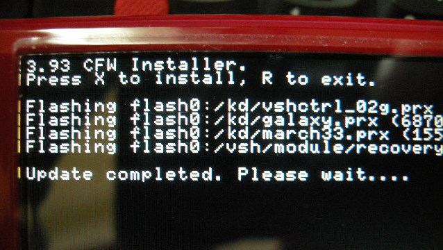 (3)XMBからアップデーターを起動する。写真のようにアップデーター自体は公式アップデータっぽく見える (4)アップデーターが起動したら×ボタンでアップデート開始する。このときとりあえずACアダプタも接続しておく事