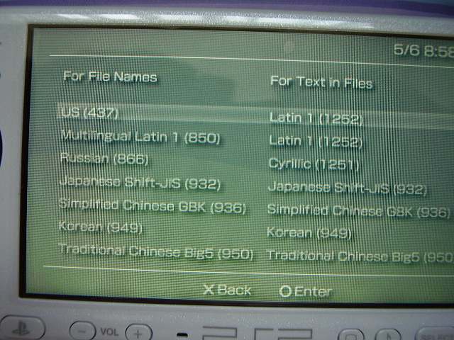 *前準備* (0)文字セットをUSに設定しておく(本体設定->文字セット) 画像1-0 文字セットをUS(437)にしておく