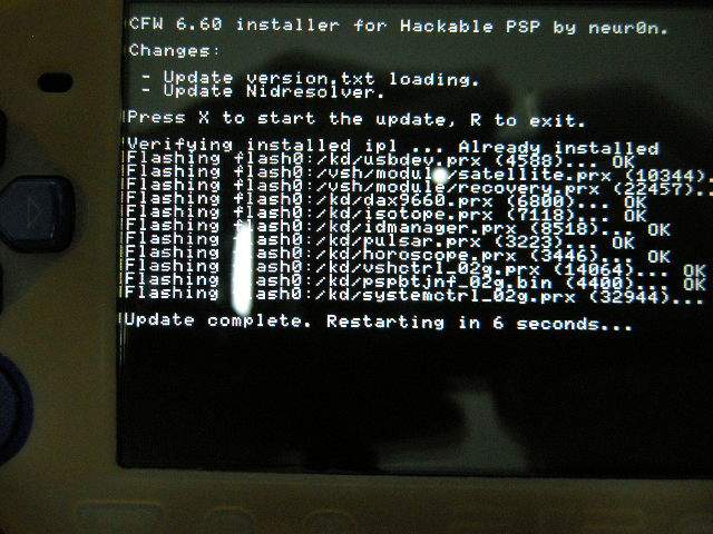 ●導入手順 (1)インストーラをダウンロードし、ms0:/PSP/GAME/UPDATE/以下にとりあえず入れてみる。他のカスタムファームウェアから アップデートするときは公式アップデータPSP v6.60のEBOOT.PBPを660.PBPとリネームしておいておく