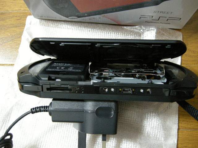 本体はこんな感じです。徹底的に物理的なボタンパーツは排除しているようで、HOME/音量+-/SELECT/STARTボタンは安っぽく なりました。メモリースティックDuoコネクタ/電源LED/メモリースティックアクセスLEDは上部に配置されたようです。