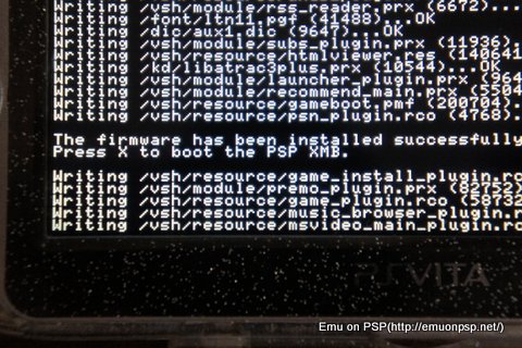 (6)ファイルが展開されるまで暫く待つ。完了後、Xボタンを押してXMBを表示へ。